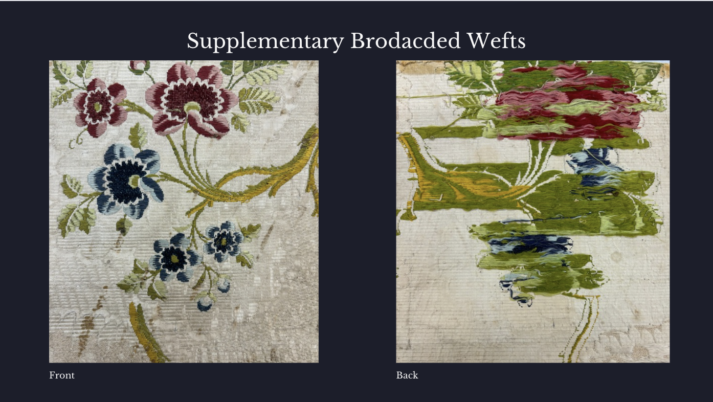Fiber and Fabrics was one of the first classes Parker took upon starting at FIT. Within this class, she learned about weave structures, how to identify fibers, and more. For both her presentations, she worked to examine an object for its purpose, weave structure, and fiber content. She also brought in comparable images to assist in dating the objects.